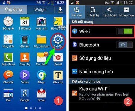 - Bước 1: Vào cài đặt (setting) =>Wifi (1)
